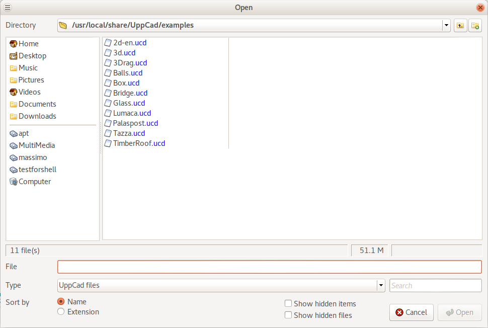 To start using UppCad, we'll show you how to open a sample project and to navigate inside the basic commands and tools.Let's start UppCad and look at its main screen: