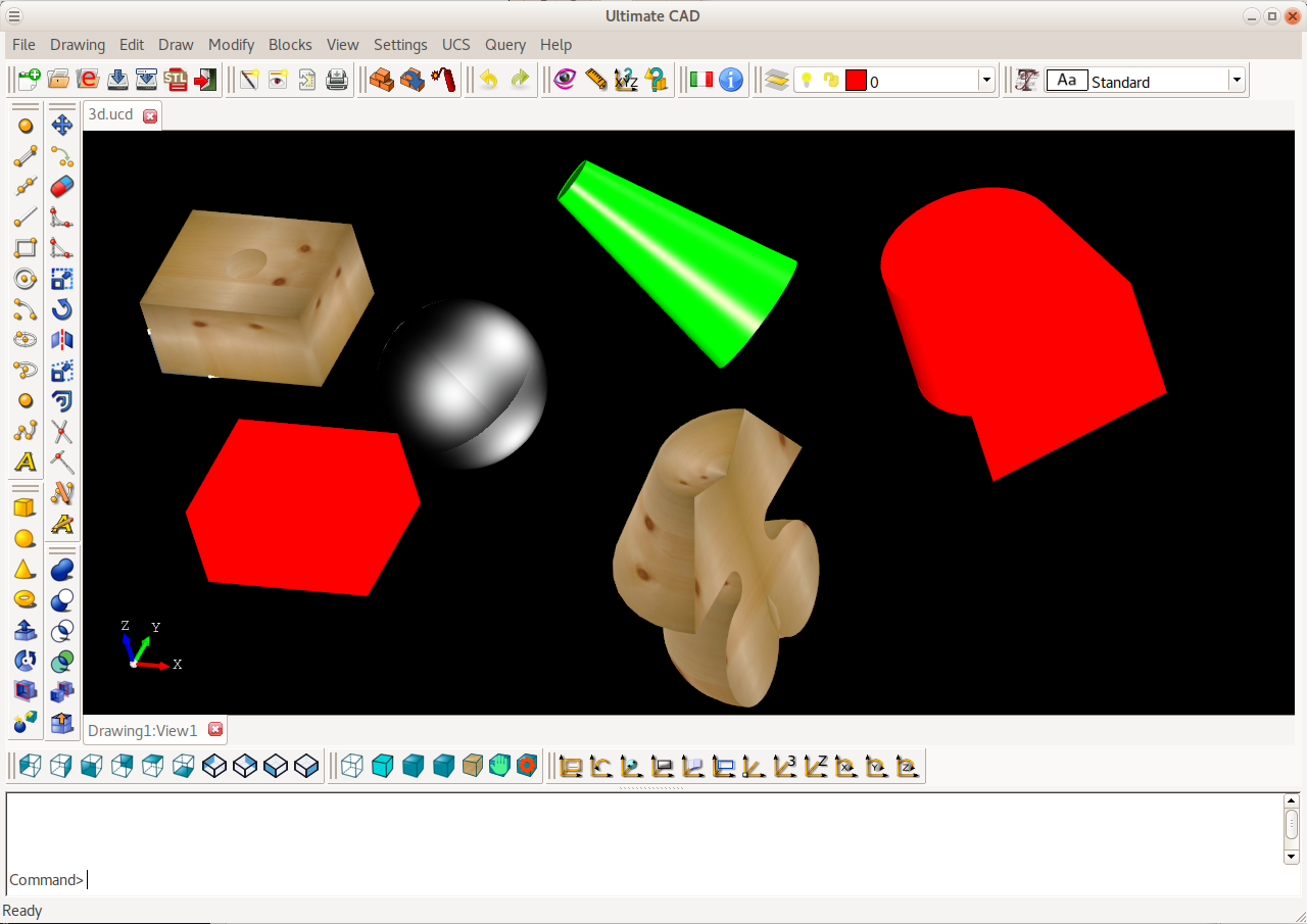 UppCad supports many shade models to display the objects; from wire view up to shaded view with applied textures that can emulate, for example, wood defects, non smooth concrete and so on.