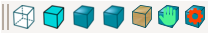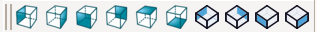 Starting from left toolbar's side we have : view from left (West), view from right (East), front view (North), rear viewo (South), top view (Plan view), bottom view and 4 ISO views, South West, South East, North West and North East.